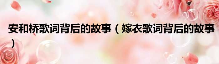 大家好,小东方来为大家解答以上的问题。安和桥歌词背后的故事,嫁衣歌词背后的故事这个很多人还不知道,现在让我们一起来看看吧!