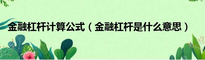 大家好,小东方来为大家解答以上的问题。金融杠杆计算公式,金融杠杆是什么意思这个很多人还不知道,现在让我们一起来看看吧!