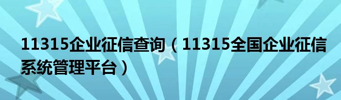 11315企业征信查询(11315全国企业征信系统管理平台)