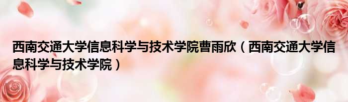 大家好,小东方来为大家解答以上的问题。西南交通大学信息科学与技术学院曹雨欣,西南交通大学信息科学与技术学院这个很多人还不知道,现在让我们一起来看看吧!
