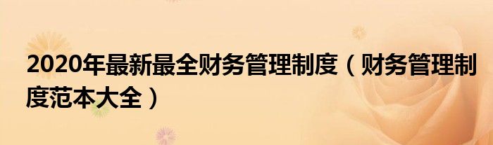 2020年最新最全财务管理制度(财务管理制度范本大全)
