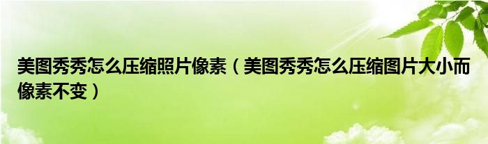 美图秀秀怎么压缩照片像素(美图秀秀怎么压缩图片大小而像素不变)