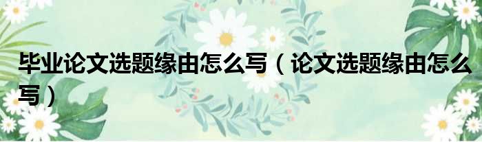 毕业论文选题缘由怎么写(论文选题缘由怎么写)