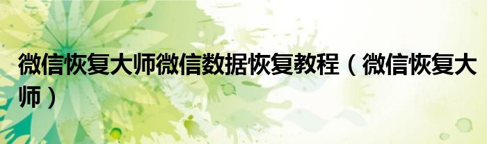 微信恢复大师微信数据恢复教程(微信恢复大师)