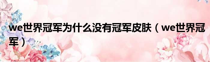 we世界冠军为什么没有冠军皮肤(we世界冠军)