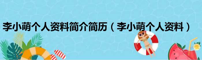 1、姓名:李小萌 昵称:去掉姓氏之后 生日:9月20日 属相:牛 出生地:北京 籍贯:北京 座右铭:寻找中 身高:170cm 星座:处女座 血型:B 民族:汉 毕业学校:北京广播学院 业余爱好:看电影、锻炼身体、听别人说话 最喜欢的颜色:黑、玫瑰红 最喜欢的水果:不用洗的、不用削皮的 最喜欢的食品:面条 最喜欢的服饰:介于男式和女式之间、正式和非正式之间 最喜欢的书:恨不得一口气读完的 最欣赏的人:理想主义者 最难忘的事:小时候被父亲打 主持特点:尚在形成中 最渴望的生活状态:掌握自己、掌握生活 简历,就是一个人简要的经历,但我的简历,翻译过来,却是一份简单的经历:北京广播学院、中央电视台<<半边天>>、<<东方时空>>节目,仅此而已。