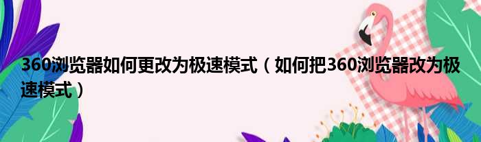 360浏览器如何更改为极速模式(如何把360浏览器改为极速模式)