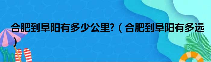 合肥到阜阳有多少公里?(合肥到阜阳有多远)