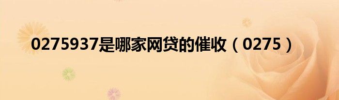 大家好,小东方来为大家解答以上的问题。0275937是哪家网贷的催收,0275这个很多人还不知道,现在让我们一起来看看吧!