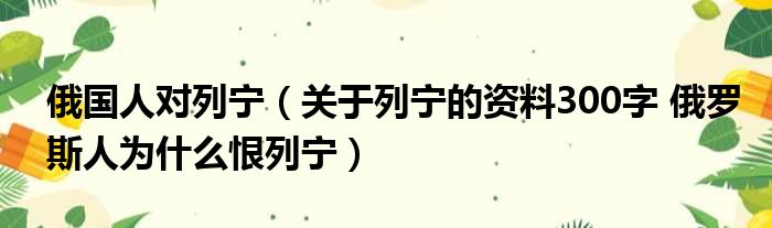 导读 大家好,小东方来为大家解答以上的问题。俄国人对列宁,关于列宁的资料300字 俄罗斯人为什么恨列宁这个很多人还不知道,现在让我们一起来看