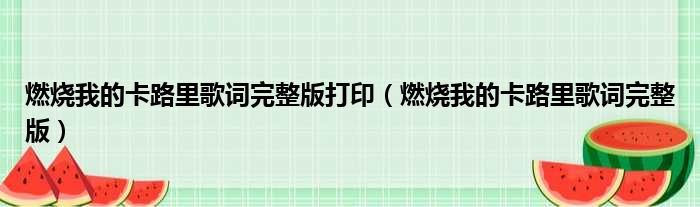 燃烧我的卡路里歌词完整版打印(燃烧我的卡路里歌词完整版)