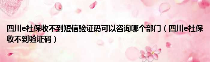 四川e社保收不到短信验证码可以咨询哪个部门(四川e社保收不到验证码)