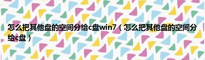 怎么把其他盘的空间分给c盘win7(怎么把其他盘的空间分给c盘)
