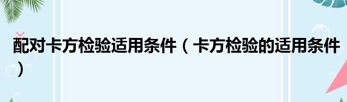 导读 大家好,小东方来为大家解答以上的问题。配对卡方检验适用条件,卡方检验的适用条件这个很多人还不知道,现在让我们一起来看看吧!1、两个独