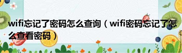 wifi忘记了密码怎么查询(wifi密码忘记了怎么查看密码)