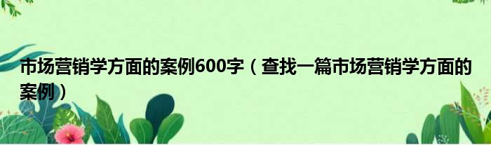市场营销学方面的案例600字(查找一篇市场营销学方面的案例)