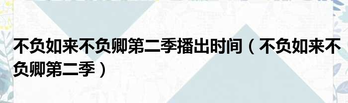 不负如来不负卿第二季播出时间(不负如来不负卿第二季)