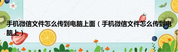 手机微信文件怎么传到电脑上面(手机微信文件怎么传到电脑上)
