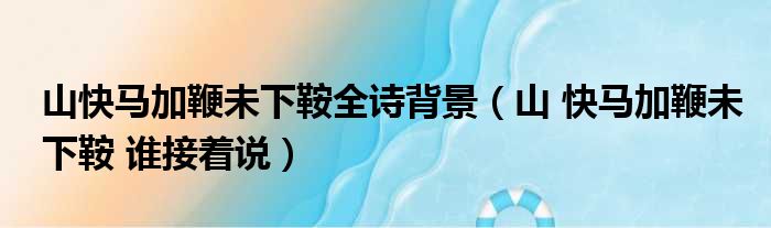 山快马加鞭未下鞍全诗背景(山 快马加鞭未下鞍 谁接着说)