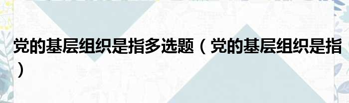 大家好,小东方来为大家解答以上的问题。党的基层组织是指多选题,党的基层组织是指这个很多人还不知道,现在让我们一起来看看吧!