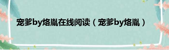 导读 大家好,小东方来为大家解答以上的问题。宠爹by烙胤在线阅读,宠爹by烙胤这个很多人还不知道,现在让我们一起来看看吧!1、《宠爹》作者:烙
