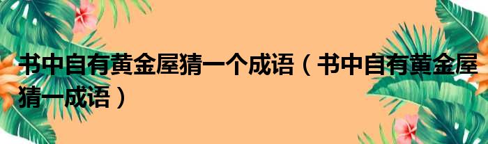 书中自有黄金屋猜一个成语(书中自有黄金屋猜一成语)