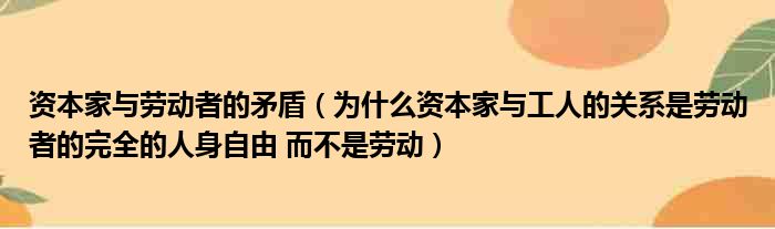 资本家与劳动者的矛盾(为什么资本家与工人的关系是劳动者的完全的人身自由 而不是劳动)