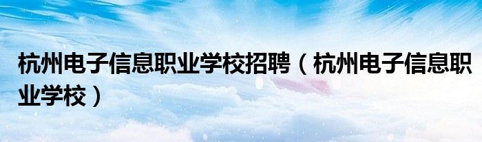 杭州电子信息职业学校招聘(杭州电子信息职业学校)