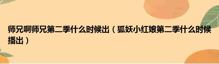 师兄啊师兄第二季什么时候出(狐妖小红娘第二季什么时候播出)