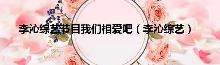 大家好,小东方来为大家解答以上的问题。李沁综艺节目我们相爱吧,李沁综艺这个很多人还不知道,现在让我们一起来看看吧!