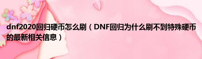 dnf2020回归硬币怎么刷(DNF回归为什么刷不到特殊硬币的最新相关信息)