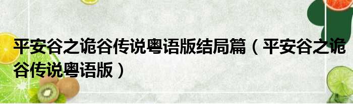 导读 大家好,小东方来为大家解答以上的问题。平安谷之诡谷传说粤语版结局篇,平安谷之诡谷传说粤语版这个很多人还不知道,现在让我们一起来看看吧