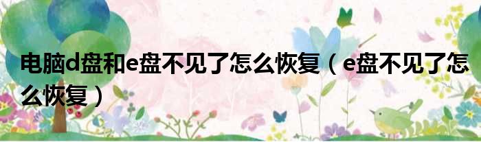 电脑d盘和e盘不见了怎么恢复(e盘不见了怎么恢复)