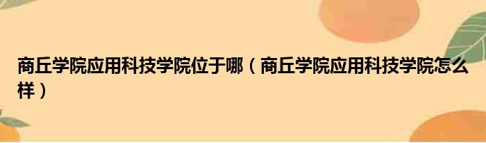 导读 大家好,小东方来为大家解答以上的问题。商丘学院应用科技学院位于哪,商丘学院应用科技学院怎么样这个很多人还不知道,现在让我们一起来看看