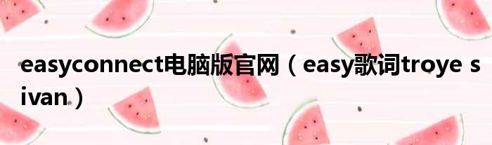 大家好,小东方来为大家解答以上的问题。easyconnect电脑版官网,easy歌词troye sivan这个很多人还不知道,现在让我们一起来看看吧!