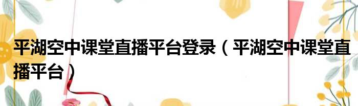 平湖空中课堂直播平台登录(平湖空中课堂直播平台)