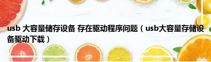 usb 大容量储存设备 存在驱动程序问题(usb大容量存储设备驱动下载)