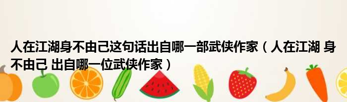 人在江湖身不由己这句话出自哪一部武侠作家(人在江湖 身不由己 出自哪一位武侠作家)