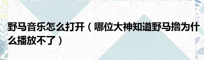 野马音乐怎么打开(哪位大神知道野马撸为什么播放不了)
