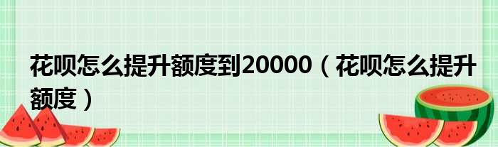 花呗怎么提升额度到20000(花呗怎么提升额度)