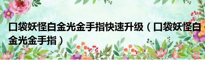 导读 大家好,小东方来为大家解答以上的问题。口袋妖怪白金光金手指快速升级,口袋妖怪白金光金手指这个很多人还不知道,现在让我们一起来看看吧!