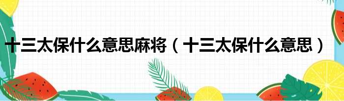 大家好,小东方来为大家解答以上的问题。十三太保什么意思麻将,十三太保什么意思这个很多人还不知道,现在让我们一起来看看吧!