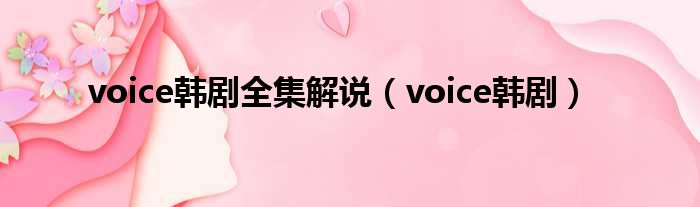 大家好,小东方来为大家解答以上的问题。voice韩剧全集解说,voice韩剧这个很多人还不知道,现在让我们一起来看看吧!