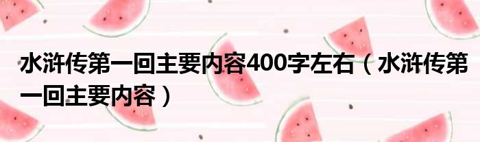 水浒传第一回主要内容400字左右(水浒传第一回主要内容)