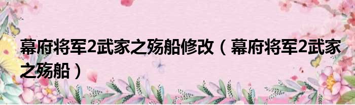 幕府将军2武家之殇船修改(幕府将军2武家之殇船)