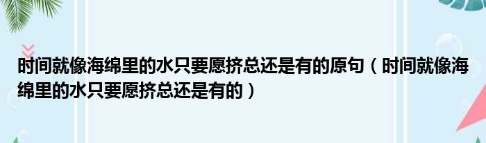 时间就像海绵里的水只要愿挤总还是有的原句(时间就像海绵里的水只要愿挤总还是有的)