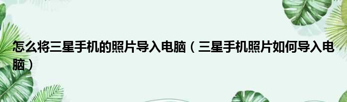 怎么将三星手机的照片导入电脑(三星手机照片如何导入电脑)