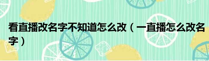 看直播改名字不知道怎么改(一直播怎么改名字)