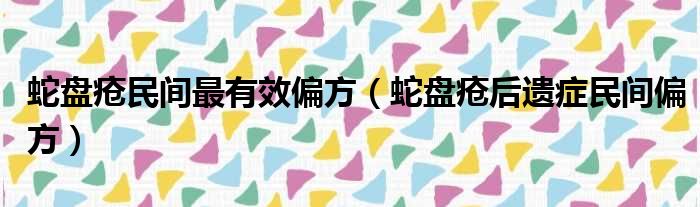 蛇盘疮民间最有效偏方(蛇盘疮后遗症民间偏方)