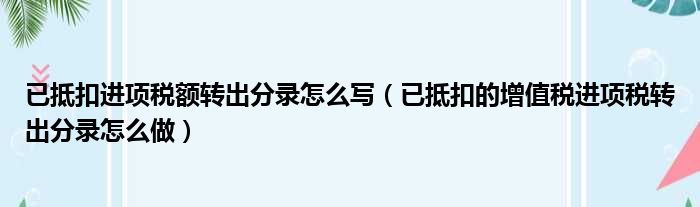 已抵扣进项税额转出分录怎么写(已抵扣的增值税进项税转出分录怎么做)